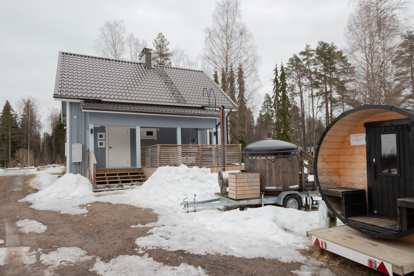 Mökin lähistöllä oma jokiranta ja laituri. Pihalla komeilee puulämmitteinen tynnyrisauna, joka tarjoaa mahdollisuuden täydelliseen rentoutumiseen luonnon keskellä. Vuokrahinnat ovat enintään neljälle henkilölle, ja lisähenkilöt hinnoitellaan erikseen. Lisäksi mökissä on ilmalämpöpumppu sekä alakerrassa että yläkerrassa, jotta sisällä voi nauttia juuri sopivasta lämpötilasta ympäri vuoden. Lisäksi tarjoamme paljun vuokrausta lisähintaan, jotta voitte täydentää rentoutumiskokemuksenne.
